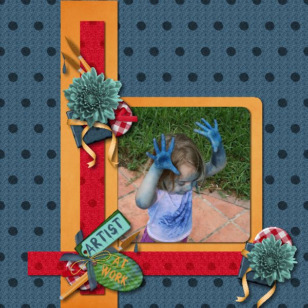These layouts were both done using the Digi Cyber Scraps kit Color My World at Mymemories.com. I love “Artist at Work” where my grand daughter got into mommies paint while daddy slept! Oh what fun! The font is “Wet Paint”.