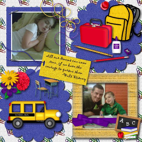 Here is a couple of pages made with the 2nd part of the new kit Teacher’s Pet designed by DigiCyber Scraps. Like Part 1 this kit has great colors & elements to scrap all your kids and grand kids school pictures. This school year is almost over so it’s a great time to get those photos scrapped. You can get this kit & Part 1 too at mymemories website. Here is a link http://www.mymemories.com/store/display_product_page?id=DCCR-CP-1204-14537&r=Digi_Cyber_Scraps Remember how you dreamed of going to school and then before school started every year you loved getting new school supplies and clothes! Let your kiddos know their education is important. Check out the picture of the kit on the right.