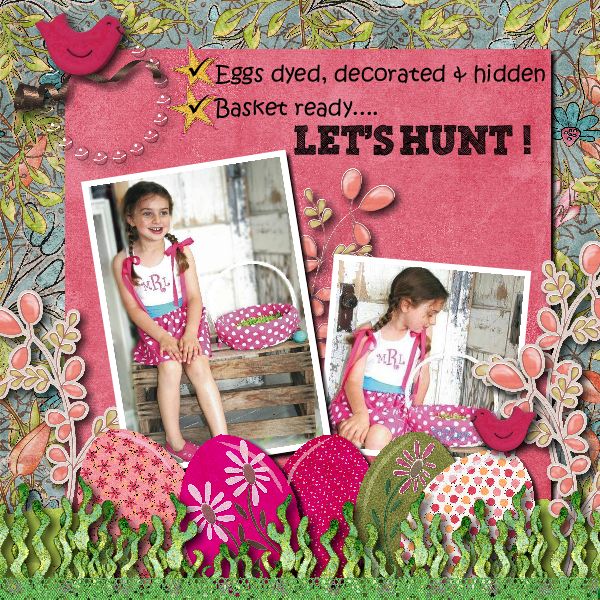 Mill looks all ready for the easter egg hunt. She’s super cute (of course), her easter basket is personalized, grass is in place, yep-it’s time to hunt! I mostly used Love Bug by Mye DeLeon from PickleberryPop! The “grass” in the forefront is from Funky Fishtank by A Saxon Creation at MyMemories.com.