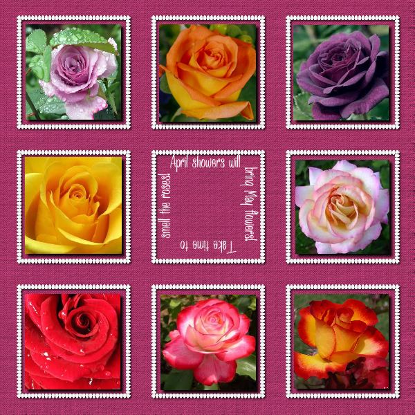 April showers do indeed bring May flowers! I love the spring time, when the grass is green, flowers are blooming and everything is fresh and new. I used various elements to make this page. The background is a paper from Raspberry Linen Delight (available soon), the “frames” are an embellishment from Spring Basket. Both of these kits are by Digi Cyber Scraps and available (or soon will be) at mymemories.com. The rose pictures are various pictures that I found online & thought were beautiful. I love flowers & beautiful, manicured lawns however, I do not have the time or green thumb it takes to achieve it. Plus I’d be scrapping in any spare time! But I do admire other people who have the vision and passion for lovely yards.