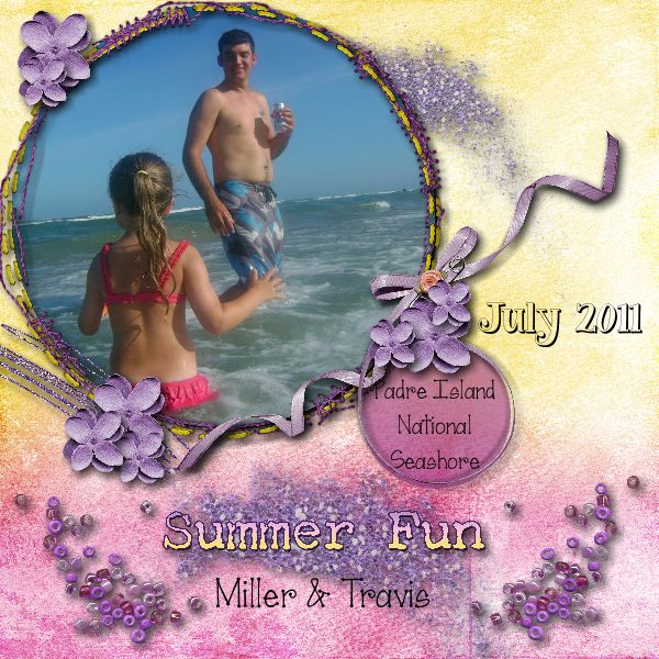 Cousins at the beach last summer. Cousin Travis stole the heart of little Miller. She loves him so much! She has been raised in water & at the beach so she has a blast every summer. “Summer Fun” was made using a new kit Gelati Swirls by Blue Flower Art.