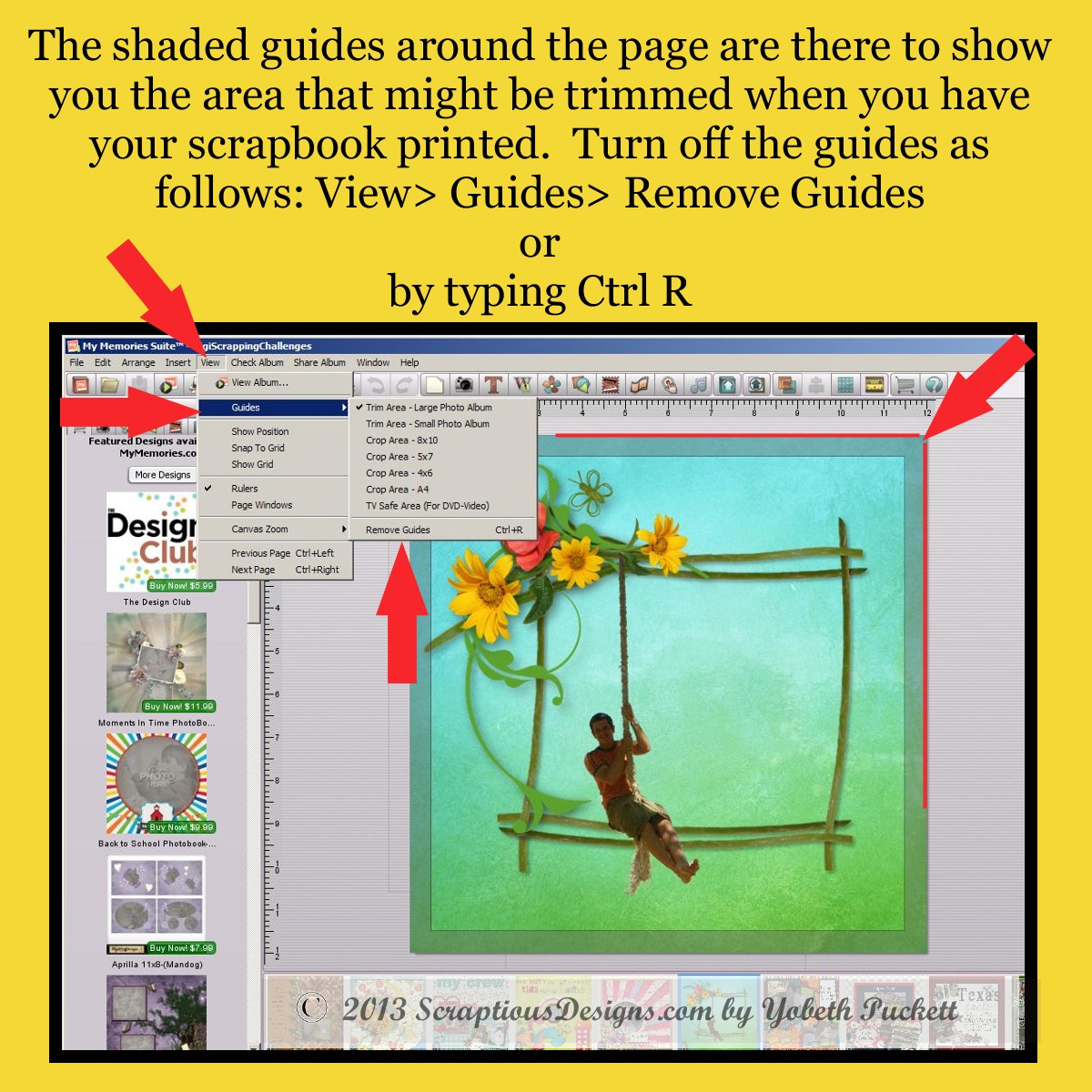 Would you like to know how to remove the trim guides when you’re working on your scrapbook pages in My Memories Suite? Personally I find them distracting so I turn them off first before I start working on my layouts. Here are a couple of ways to do it.