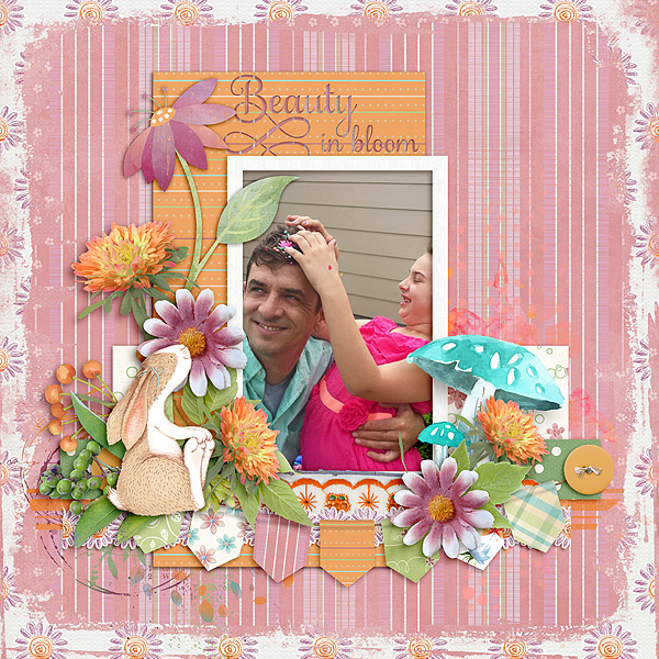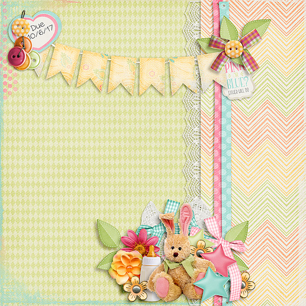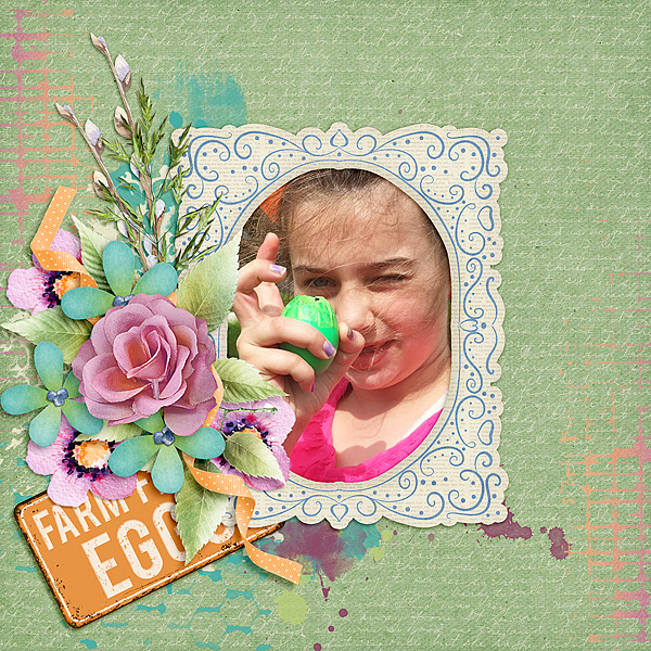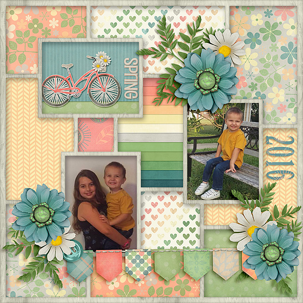 I’m sure I am not alone when I say I am so happy to see new releases at The Digichick that are filled to the brim with gorgeous spring colors! We had a very mild winter here in central Texas so it’s a little difficult to relate to all the snowy, frosty winter kits. Don’t get me wrong, they’re beautiful but I don’t usually have any snow scene photos. I’m thankful for the mild weather and that we’re now seeing winter in our rear-view mirrors. This week I was able to play with Snickerdoodle Designs new release, Spring-A-Ling. The layout below was created for one of my favorite challenges at The Digichick, the Tic Tac Toe Challenge. I love the soft colors, the watercolor elements, the edgers, and the bunny. This collection is huge and includes pre-made borders and clusters that Karen made.