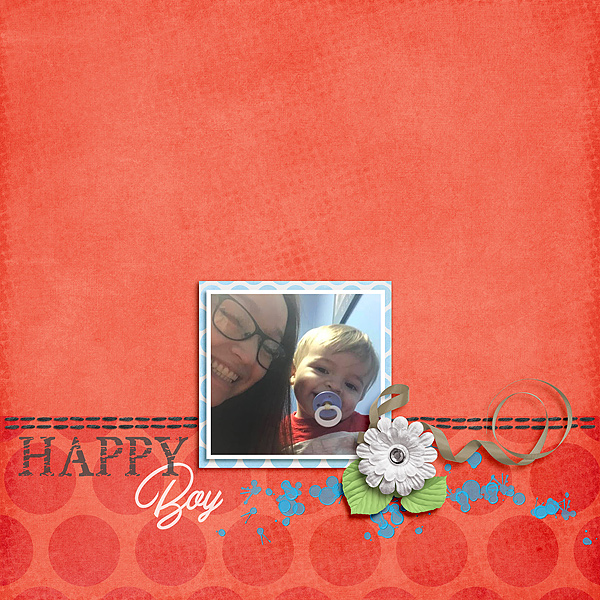 Here is the layout I created with this month’s mystery box. To create the circles at the bottom of the page I used a white paper with blue polka dots and applied a blend mode. It’s the same paper I used for the photo mat.