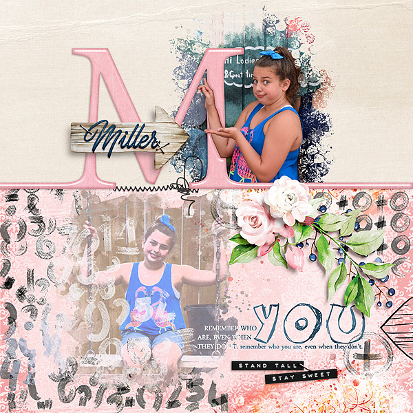 Here’s another layout based on the same tutorial but using a different kit. I used the same photos and cut out but a different layout design and kit.